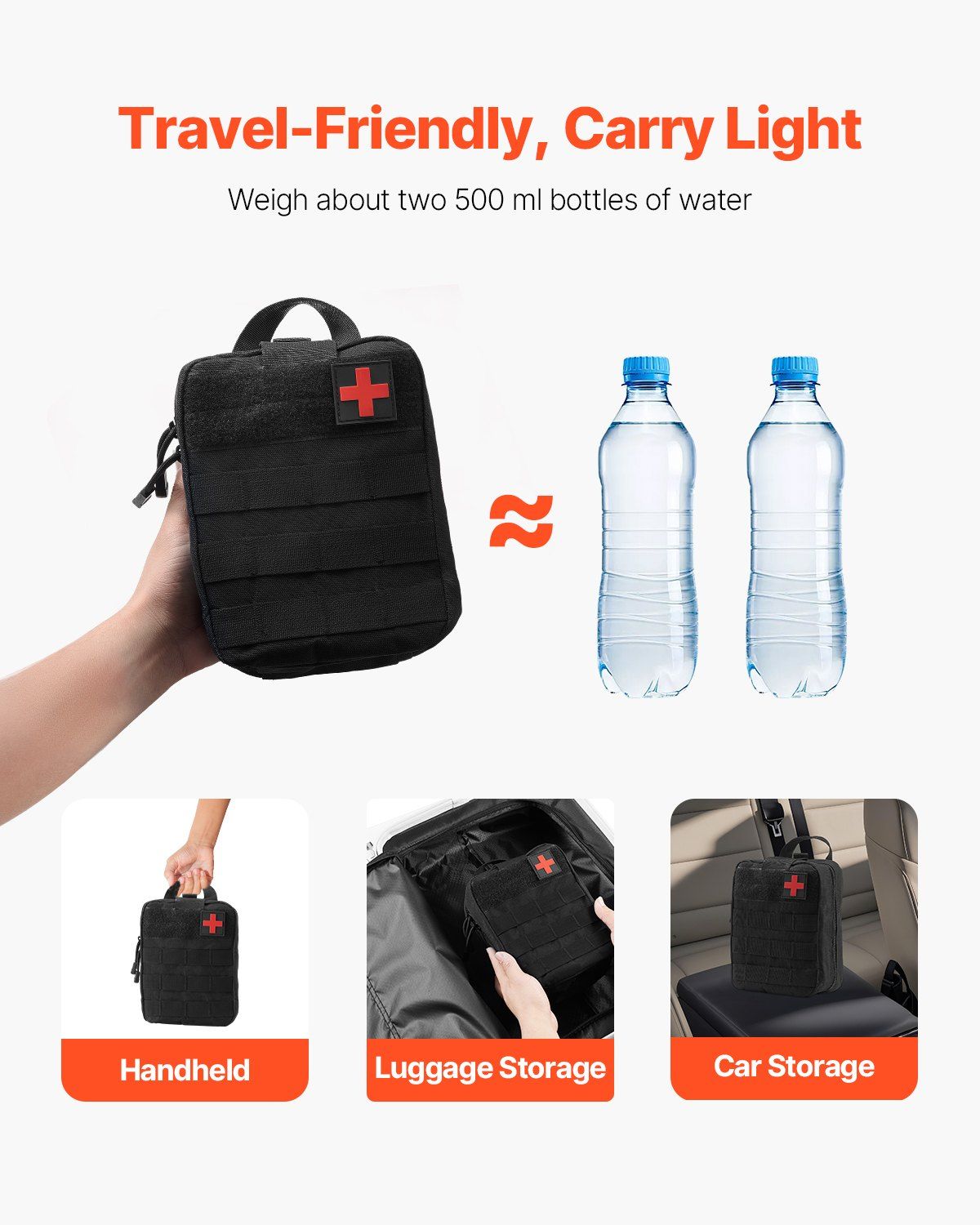 Made from tough 600D nylon, this emergency first aid kit is wear-resistant and tear-resistant, ensuring durability in all conditions. Whether in everyday use or harsh environments, it keeps your medical supplies secure and protected, so you're always ready for anything.