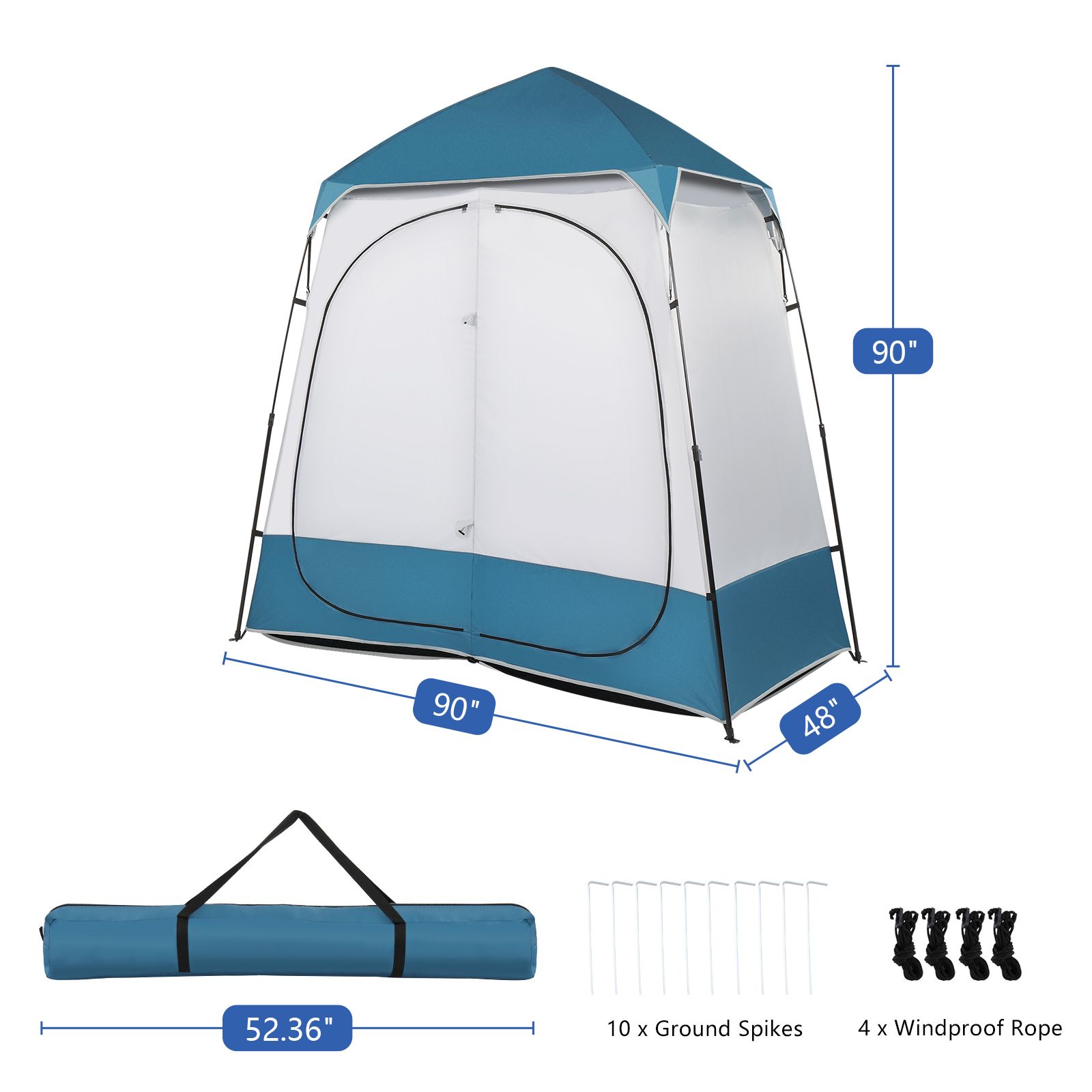 Home > 90x90x48" Portable Outdoor Pop UP Camping Shower Tent Enclosure, Shower Shelter, Changing Room, Dressing Tent, 2 Rooms, Instant Tent Blue/White RT