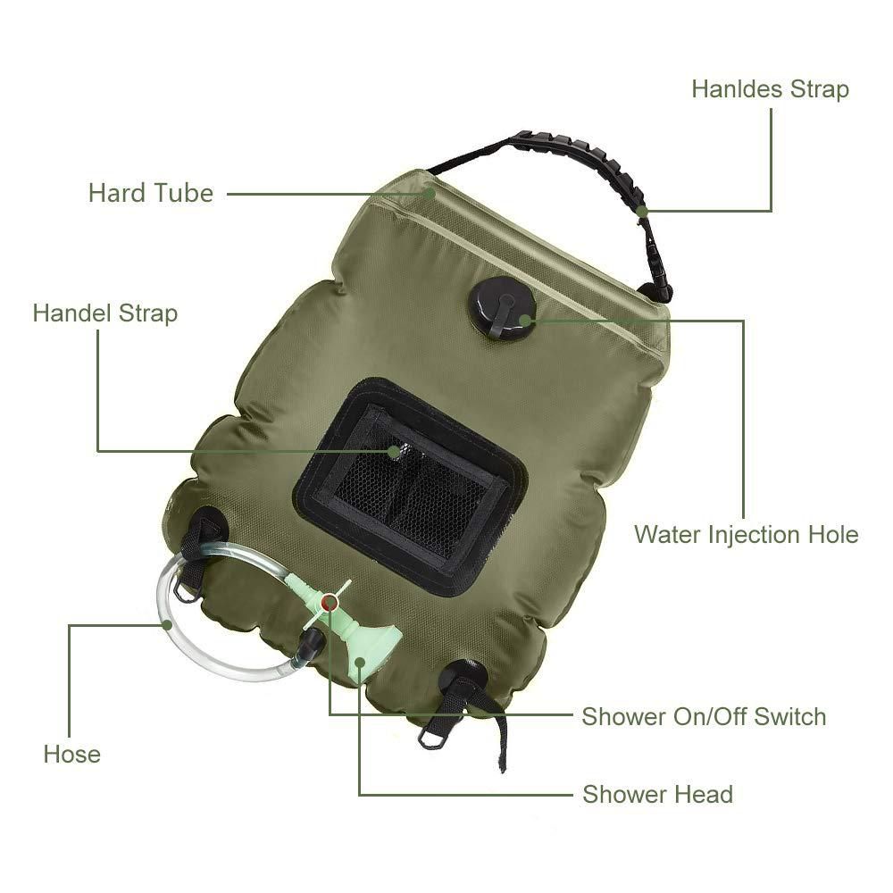 20L Outdoor Bathing Bag Solar Hiking Camping Shower Bag Portable Heating Bathing Water Storage Bag Hose Switchable Shower Head
