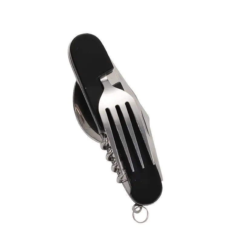 Home > Stainless Steel 6-in-1 Multi-Tool Cutlery Set, Folding Pocket Knife with Fork, Spoon, Can Opener, Corkscrew, and Bottle Opener, Versatile Outdoor Surv