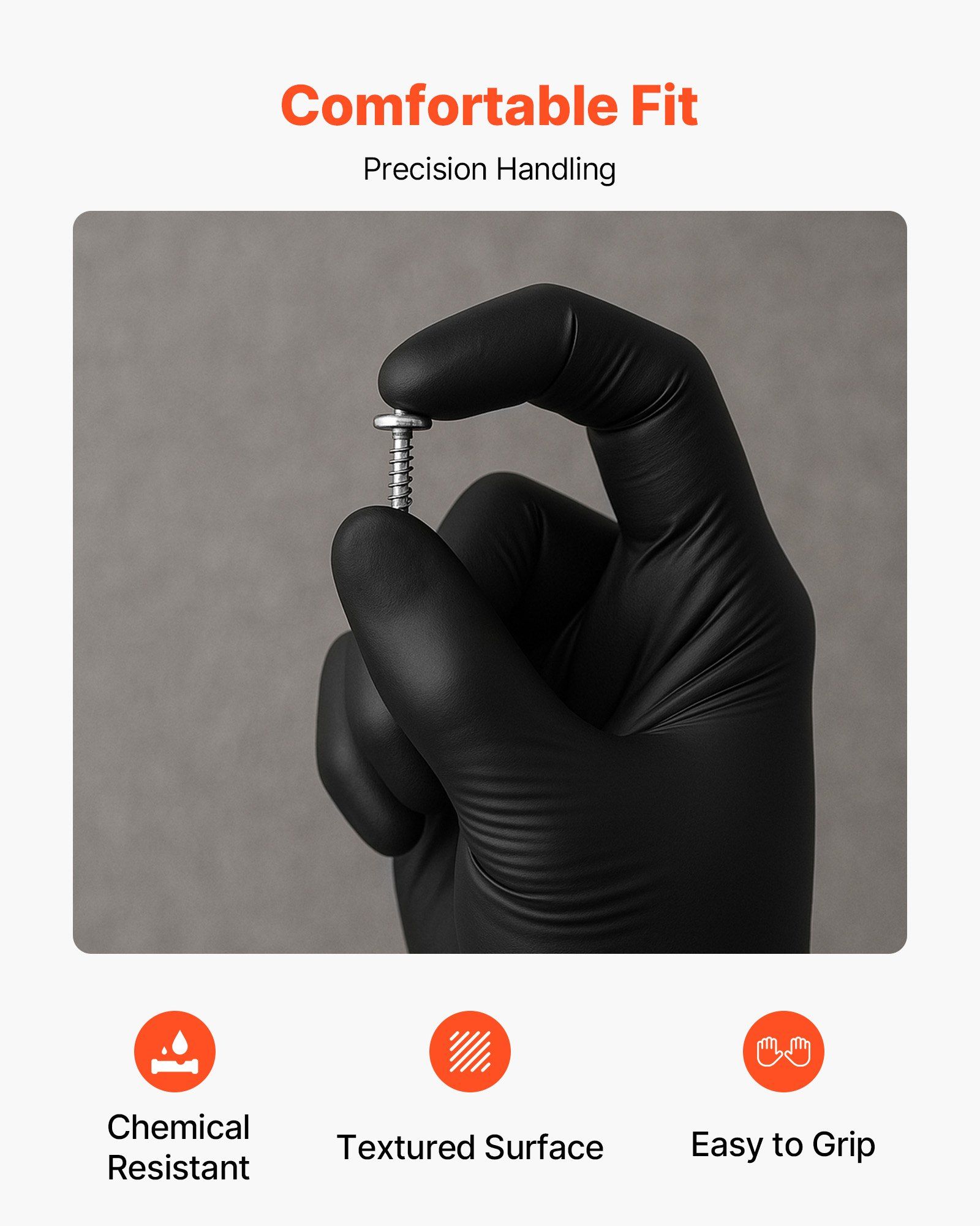 3.Textured Fingertips: These black disposable gloves feature textured fingertips for better grip and tactile sensitivity, allowing for improved control of small tools in various work environments